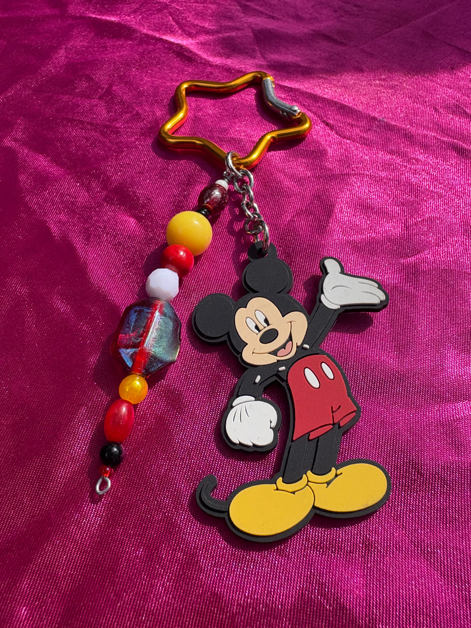 Orange star carabiner with Mickey Mouse charm and matching multicolor beads.